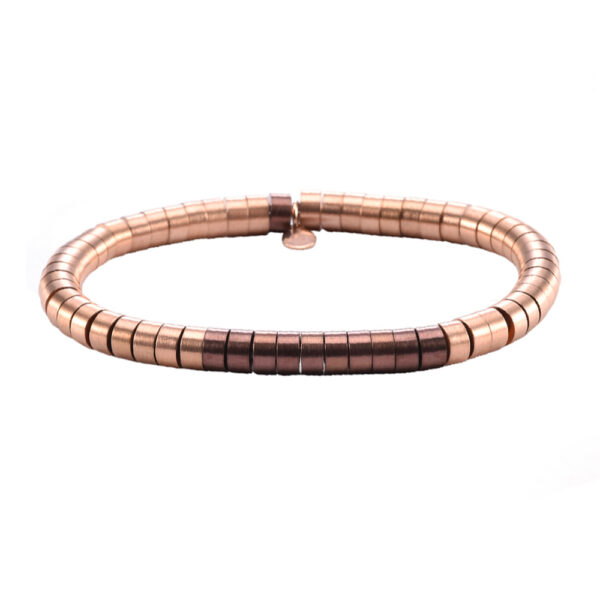 Mots clés importants : Bracelet heishi métal, acier rose, choco mat, couleur du métal, diamètre 6 mm