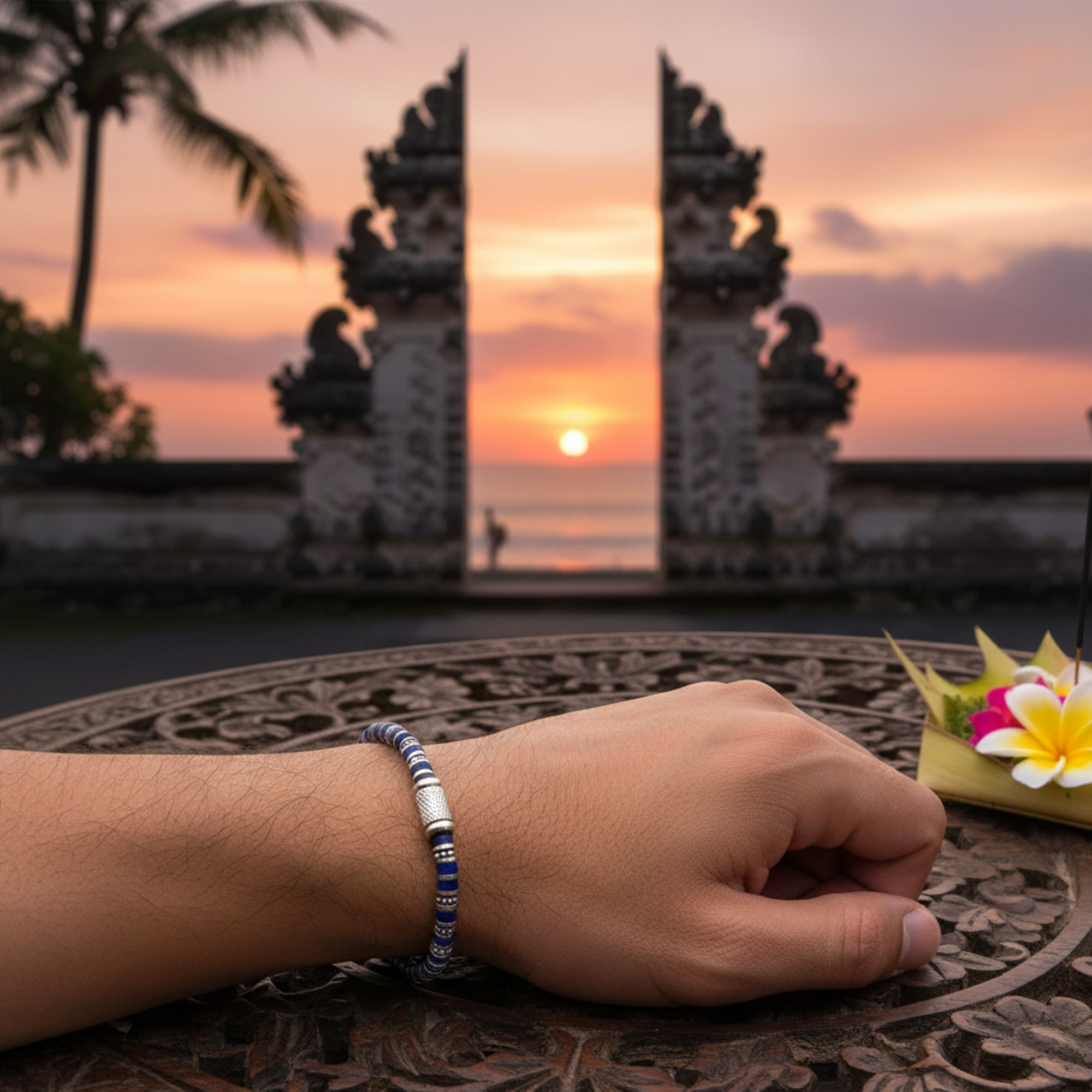 Bracelet 4mm perles heishi lapis bali
