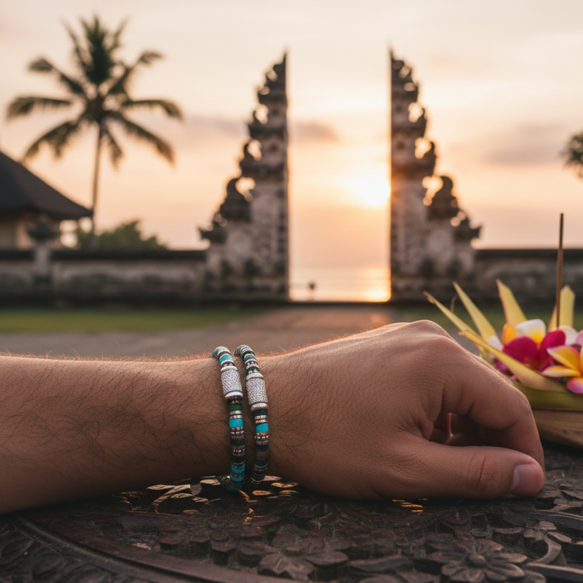 Bracelet 4mm perles heishi turquoise bleu et vert bali