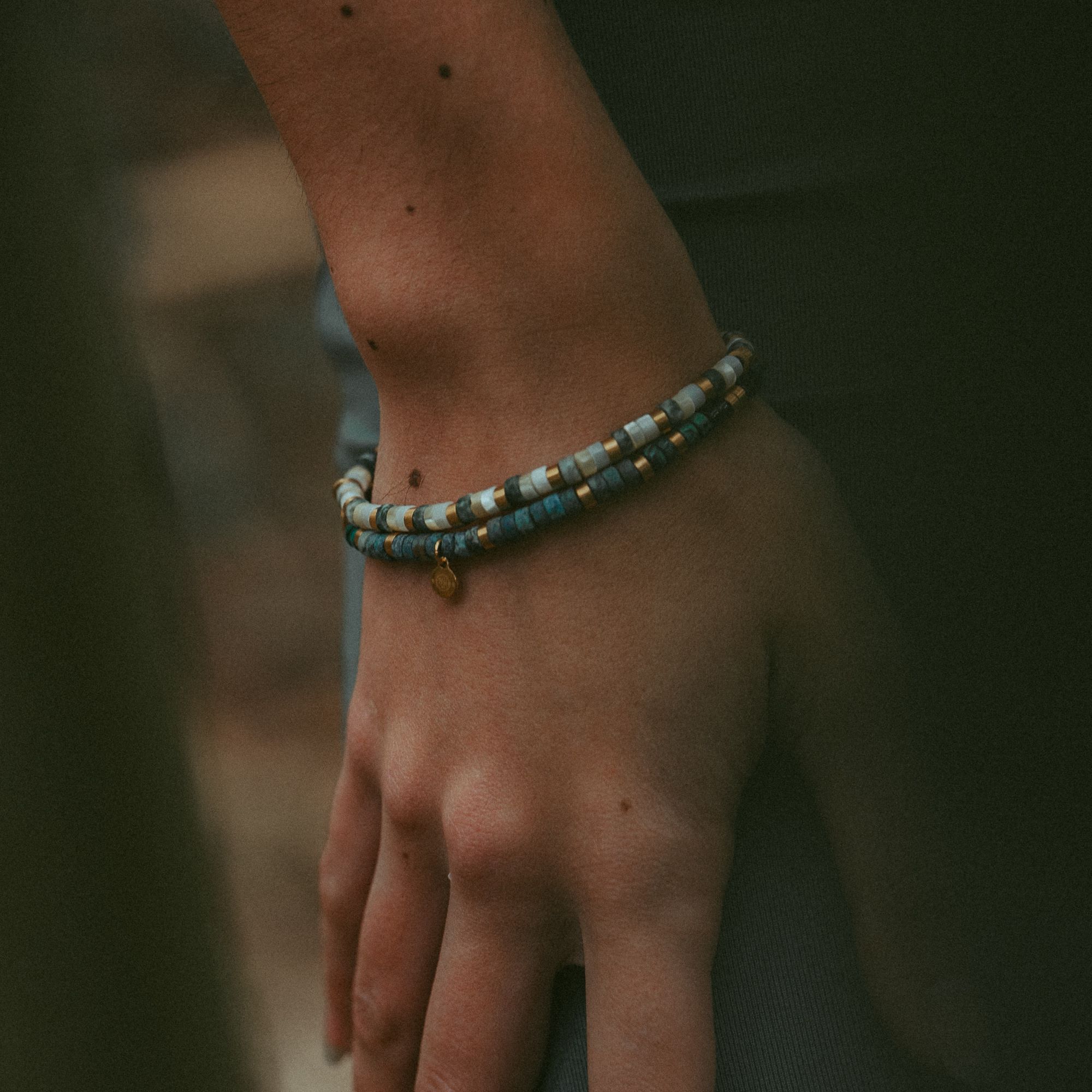 Un bracelet perles heishi jaspe bleu impériale 4mm pour une élégance intemporelle