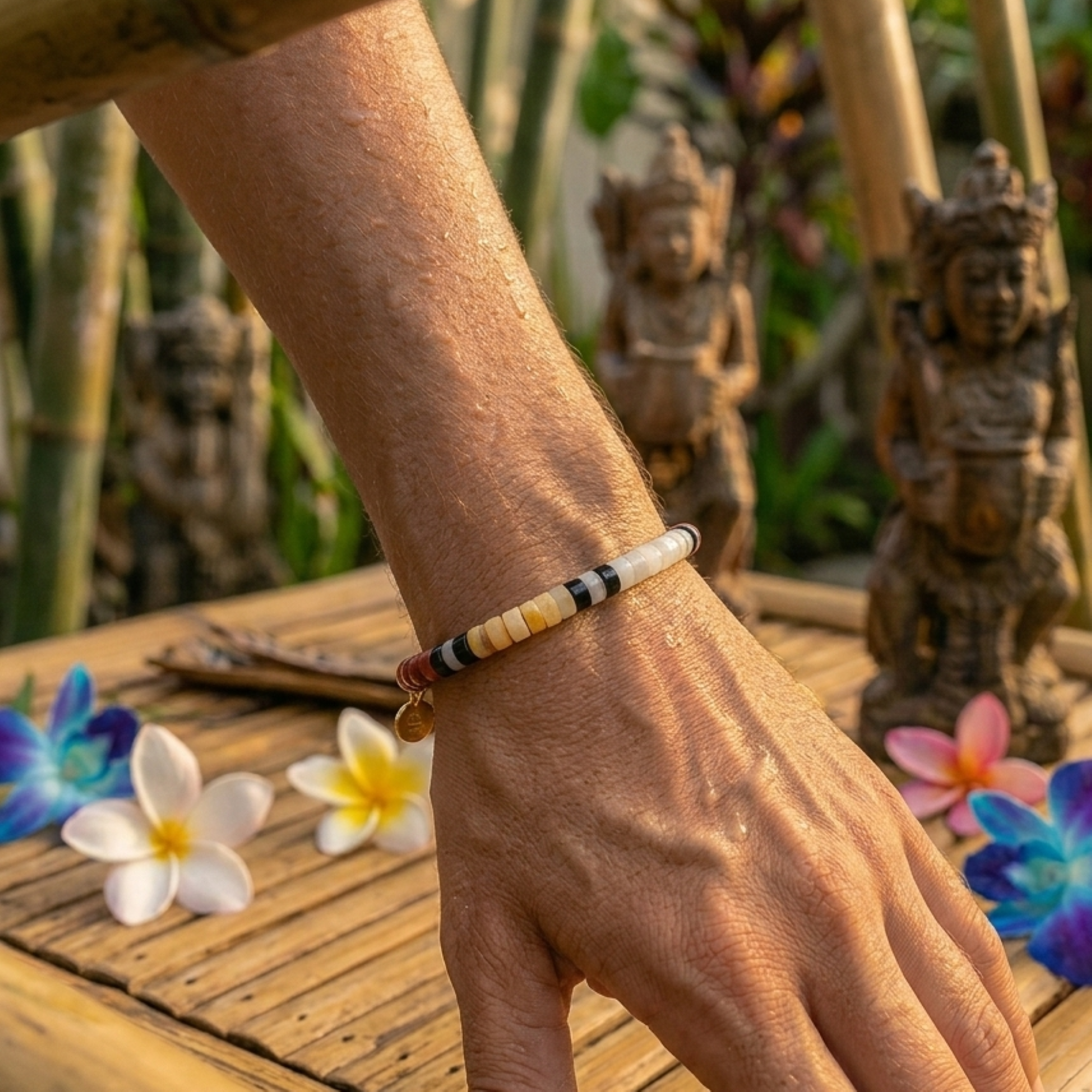 Le bracelet perles heishi jaspe jaune blanc rouge est l’accessoire parfait pour ajouter une touche de couleur et d’originalité à votre tenue. Les perles en jaspe blanc, jaune et rouge apportent une harmonie visuelle unique, tandis que le métal doré ajoute une touche d’élégance. Que vous soyez une femme ou un homme, ce bracelet s’adaptera parfaitement à votre style, que ce soit pour une occasion spéciale ou pour un look décontracté au quotidien.