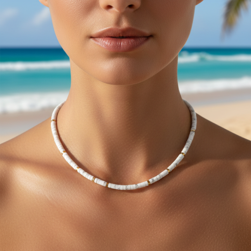 Collier perles heishi pierres naturelles turquoise blanche