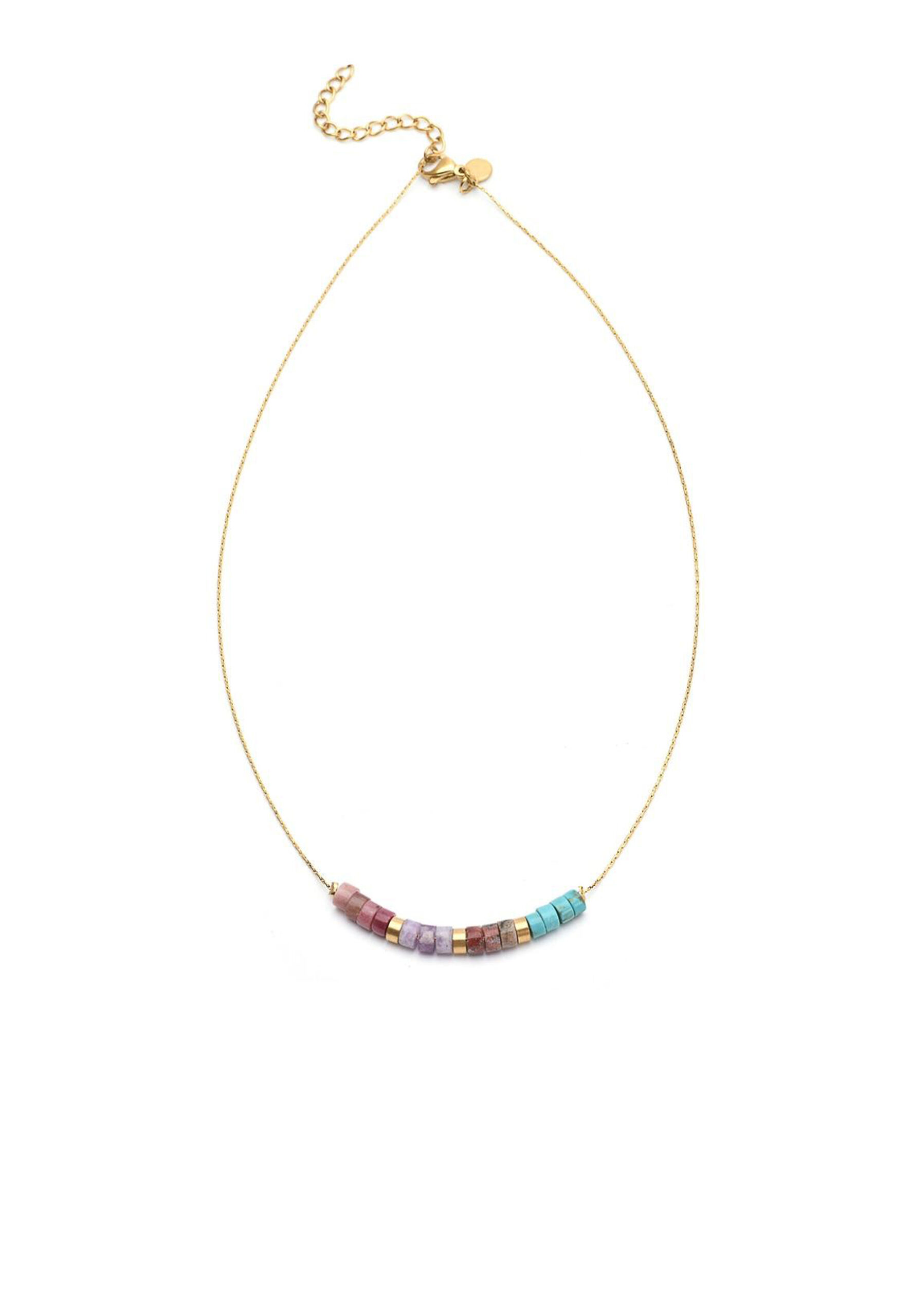 Collier perles heishi pierres naturelles améthyste turquoise jaspe rouge